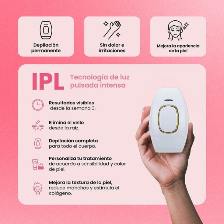 ⚡ Olvidate del ardor y la inflamación: el IPL trabaja sin maltratar tu piel.